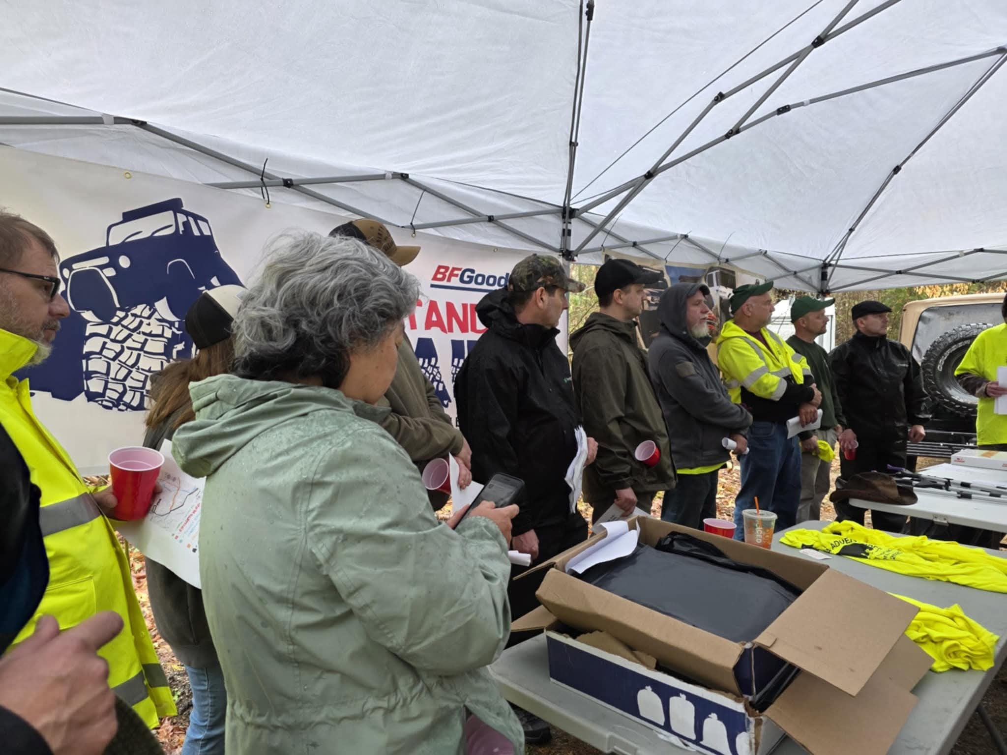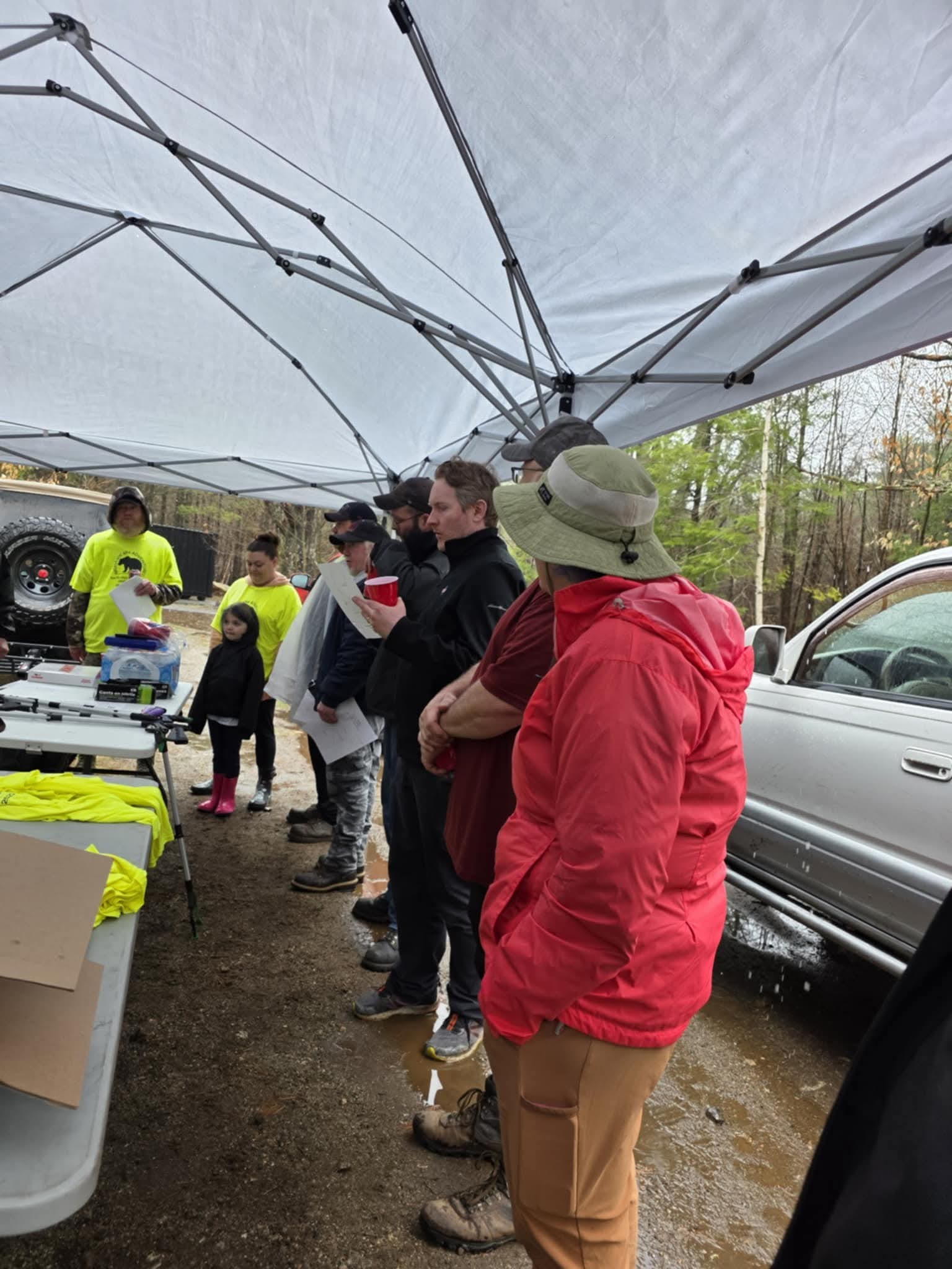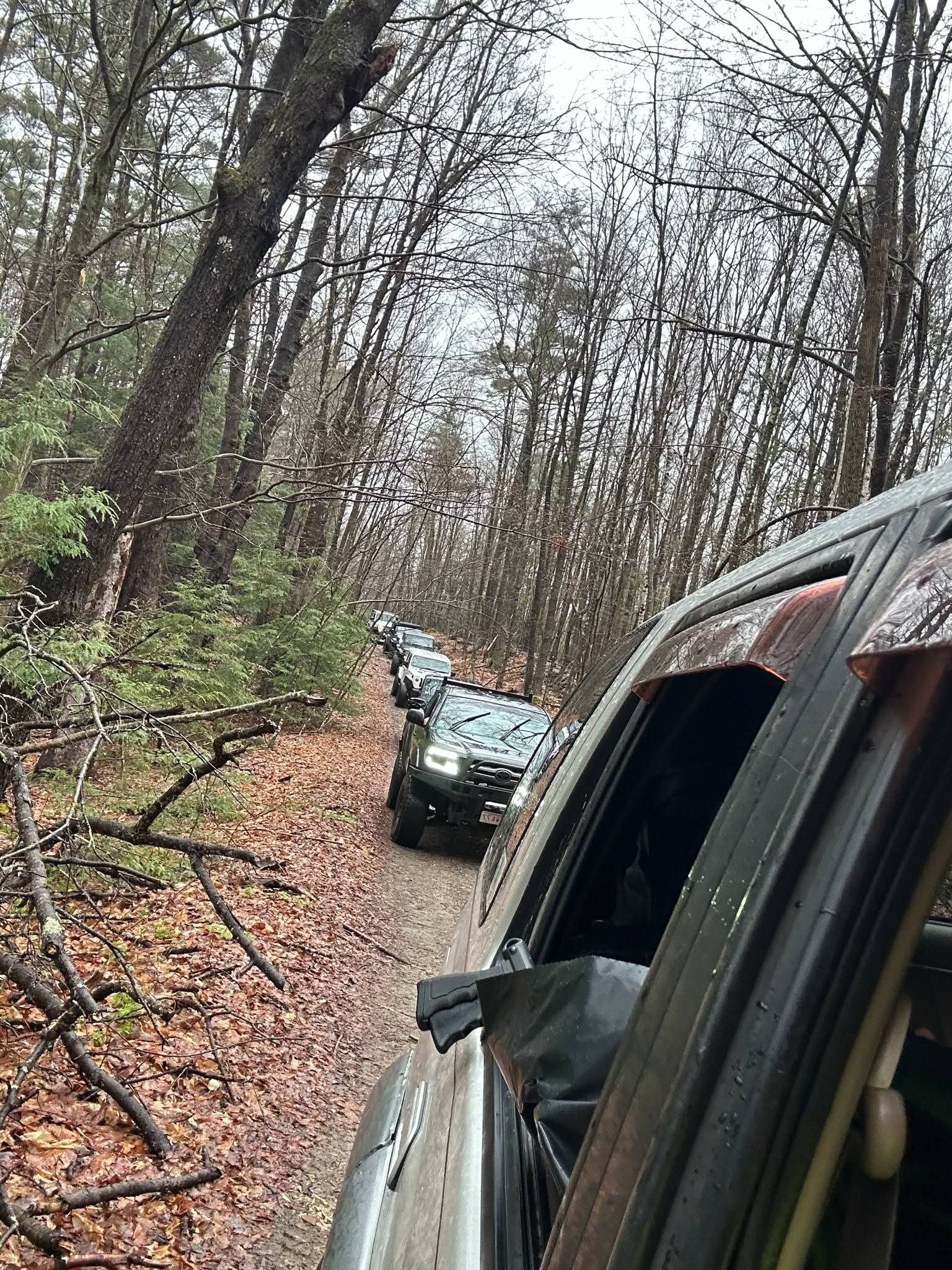 Volunteers, safety tee shirts, pick up tools, garbage bags, banners, DCR staff and Mohawk 4×4 Adventures volunteers.These tee shirts are printed on safety colors, and were required equipment. The weather was terrible, but here’s a good shot of the front of the tee shirt.Our sponsors for the event were awesome. These businesses helped us navigate the most successful line through many obstacles.This Toyota Tacoma hauled a huge load out of the woods on this trip. This Tacoma is pictured during its first run through the forest. In this case, the member and his wife volunteered for 8 hours, to pack their truck full of trash and deliver it to our donated dumpster.This Jeep Gladiator hauled out tires to our tire dumpster from FBS Tire Recycling. When we were scouting the roads for this clean up, we had spotted a pool liner, down by a stream. It was more than just the pool liner, it was most of the pool.Our volunteers were able to get pool from the stream bank to the dumpster, provided by Rick’s Roll-Offs, LLC.This trophy was spotted in 2024, and pinned on GPS. It turned out to be a spelling bee trophy. After the Earth Day Clean-up was complete, the trophy was tightened up, and used as a prize for guessing, without going over, the weight inside the dumpster on a Facebook contest. Amy (red Gladiator) won the contest! The weight in the dumpster was 2180 lbs.“What am I looking at?” That, my friend, is a rocking horse. It is zip tied into a tree. During one of the scouting trips, we had come across teenagers on ATVs and dirt bikes, who had come south from NH. They got the rocking horse cut down, and we set it aside for collection during the clean-up. The problem was – it disappeared before the clean-up. A horse is a horse, unless, of course, unless it’s a magical rocking horse… The Horse was located again on Nov 16th by volunteers and DCR employees. We decided the mythical mascot could stay. It is a little dangerous to remove, it’s off the ground, and it is kind of funny archeology.“Just take those old records off the shelf, I’ll sit and listen to them by myself.” We found two acoustic guitars together.Volunteers removed an entire living room furniture set, up a steep hill. Dirty, moldy, rotted furniture that was probably left here 20+ years ago. Here’s Rick of Rick’s Roll-Offs, LLC. Rick donated the dumpster use, delivered it, came back with his Jeep, volunteered during the entire clean-up and came back the next day to get the dumpster. His company also donated any fees needed for items that required payment to dispose of legally where he unloaded. This kind of volunteerism by club members is next level above and beyond.FBS Tire Recycling donated and delivered this enclosed container for all our our tires and tires and wheels. We ended up with 38 pieces in this dumpster. Our club members are top tier people, enjoying and maintaining top tier, sustainable trails.Tread lightly! and BF Goodrich Outstanding Trails Program sponsorships were instrumental in this entire process. They supplied tools and supplies, and funded our volunteer tee shirts to make this project a success.