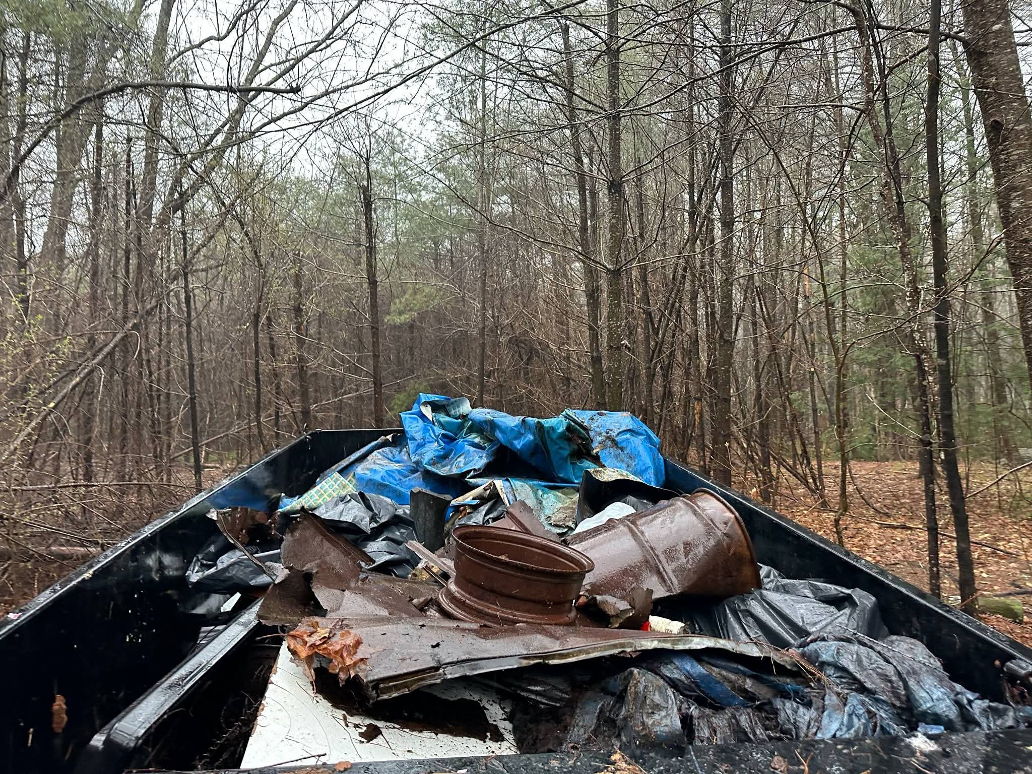 This State Forest has 9.4 miles of Discontinued for Maintenance Roads, in this case, Forest Roads. Forest Roads provide a Public Right of Way. We identified a need for a clean-up, a large scale clean-up, in the fall of 2024. During the discovery process, we collected several yard waste bags of trash.
