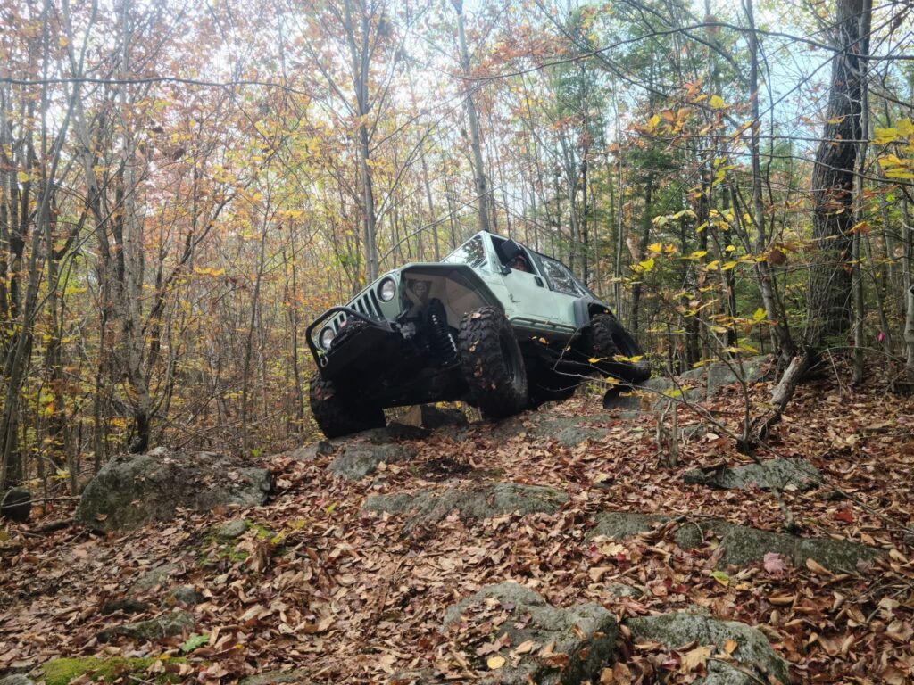 The Homestead is a private property owned by a club member. We have been building trails there since 2015, but have been more consistent since 2023. The property features an antique farm house on historical land, with acreage behind the house where the trails are. The trails feature a lot of rock and bedrock, very difficult obstacles and difficult trail options. Located near Plymouth, NH, our club visits twice per year and enjoys free camping outside the farm house. In 2026, we will have a weekend with wheeling and trail scouting and flagging. Later, we will conduct a Work and Wheel, and create the new trail(s) we flagged.